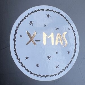 Etiket X-MAS wit/goud/zwart 40mm