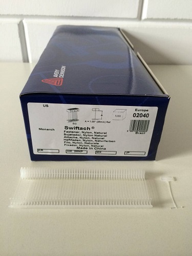 Dennison textielpins 25 mm std / standaard / regular Nylon riddersporen verpakt per 5.000 stuks art.nr. 02040. Avery Dennison Swiftach®