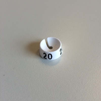 MB wisersizer wit/zwart 20 voor op kledinghanger, zakje met 25 stuks. Diameter 19,2mm hoogte 8,3mm – cijferhoogte 6,2mm. Geschikt voor hangers met diameter van 2 tot 3,5mm.