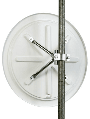 Verkeersspiegel 80cm rond met rand rood/wit geblokt. Compleet met alleen klem voor op buispaal met diameter 75 mm. (3 inch). Industriespiegel. Diameter van het frame is 94cm.
